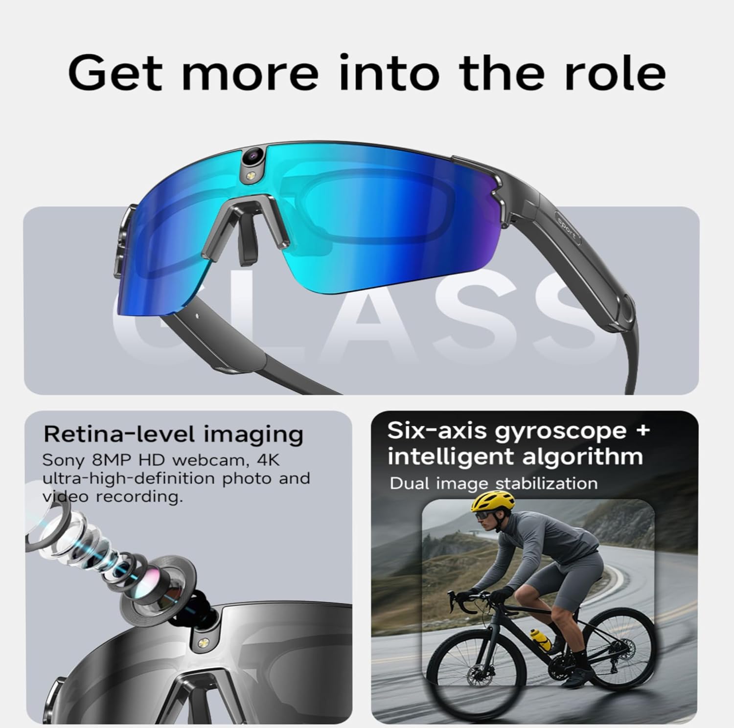 Lewomo Smart Cycling Glasses are designed for outdoor enthusiasts, combining professional eye protection with rich intelligent functions.Equipped with an 8MP HD camera and 6-axis gyro anti-shake system, it can capture stable videos and clear photos during cycling, running, hiking and other outdoor activities.The dual microphone noise reduction system ensures clear recording, while Wi-Fi and Bluetooth support real-time data transmission and quick sharing.This smart glasses also support wearing detection, music control, voice assistant and Bluetooth call, bringing convenient smart experience.Powered by a 290mAh large-capacity battery, it ensures long-time outdoor use. The multi-language translation function provides great convenience for traveling and global communication.In addition, it is equipped with an interchangeable myopia frame for prescription lenses, and the lenses offer UV and wind protection.Ergonomic, lightweight and multi-functional, Lewomo smart glasses are perfect for cycling, running, hiking, fishing, traveling and daily wear.Package Includes:1 × Lewomo Smart Glasses1 × Interchangeable Myopia Frame1 × Cleaning Cloth1 × USB Charging Cable1 × User Manual
