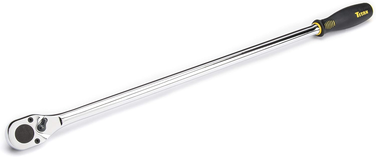 Titan 11360 3-Piece 36-Tooth Extra-Long Slim Head Ratchet Set includes (1) 1/4-Inch Drive x 11-1/4-Inch, (1) 3/8-Inch Drive x 17-1/2-Inch, and (1) 1/2-Inch Drive x 23-1/2-Inch extra-long ratchet. Extra-long ratchets feature molded comfort-grip handles and are constructed of chrome vanadium for strength and durability. Slim head ratchets feature 36-Tooth reversible ratcheting mechanisms that produce a sweep of 10 degrees. Low tooth count and thick, heavy duty teeth provide more strength to apply greater torque. Made in Taiwan. Ratchet rebuilt kits available – 11368 for 11361, 11369 for 11362, and 11370 for 11363.